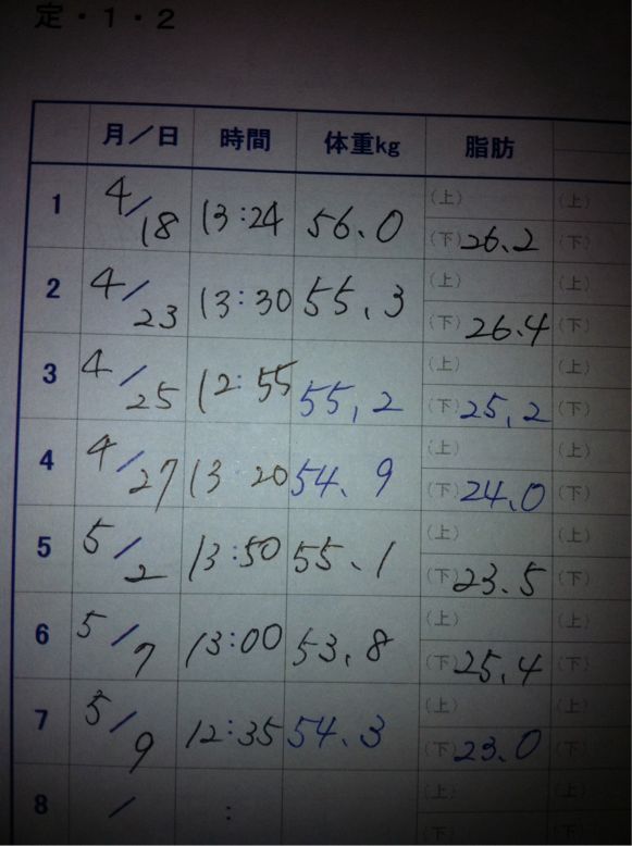 体重の減りがイマイチですが、体脂肪をここまで減らすのは結構大変なんですよ!