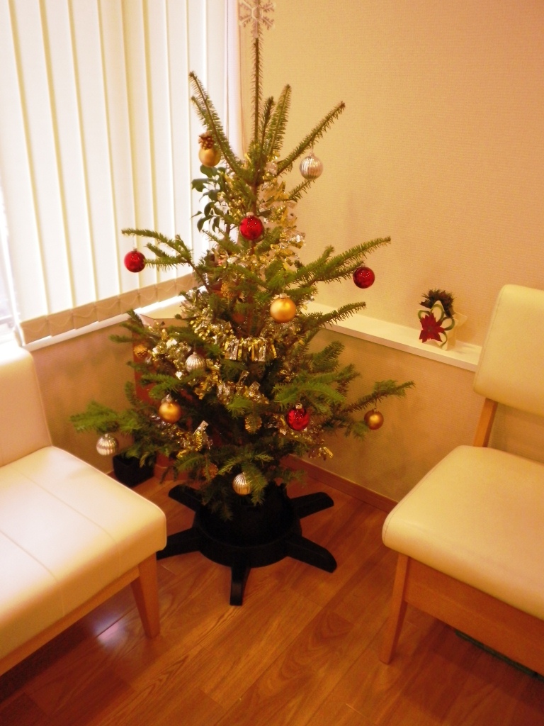 津田沼はまだそこまでイルミネーションでキラキラはしていませんが、山崎治療室では、もうX’masツリーを飾りました